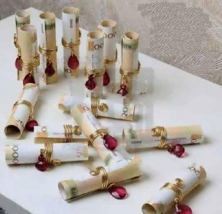 یکی از بخش های جذاب جشن عروسی، بخش شاباش به وسیله خانواده ها و نزدیکان هر دو طرف است و چون پول با اسکناس رایج ترین نوع شاباش می باشد، بسیاری از اشخاص دوست دارند که به وسیله شیوه های خلاقانه، اسکناس ها را به صورت های گوناگون درآورند. در این قسمت نیز مدل های گوناگون تزیین شاباش را خواهید دید و می توانید از این مدل ها ایده بگیرید.