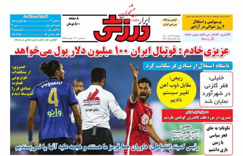 صفحه نخست روزنامههای امروز دوشنبه 15 آذر 1400 1400/09/15 06:59 272 0 0 صفحه نخست روزنامههای امروز دوشنبه 15 آذر 1400 بیشتر بخوانید صفحه نخست روزنامههای امروز دوشنبه 1 آذر 1400صفحه نخست روزنامههای امروز دوشنبه 15 شهریور 1400صفحه نخست روزنامههای امروز دوشنبه 4 مرداد 1400 روزنامه روزنامه های سراسری مطبوعات کشور پیشخوان پیشخوان مطبوعات عناوین روزنامه 0 1 2 3 4 5 امتیاز: 0 (از 0 رأی ) مطالب مشابه صفحه نخست روزنامههای امروز دوشنبه 4 مرداد 1400 ادامه مطلب صفحه نخست روزنامههای امروز دوشنبه 1 آذر 1400 ادامه مطلب صفحه نخست روزنامههای امروز دوشنبه 15 شهریور 1400 ادامه مطلب برچسب ها روزنامه روزنامه های سراسری مطبوعات کشور پیشخوان پیشخوان مطبوعات عناوین روزنامه نظرشما اینجا بنویسید کد را وارد کنید: * کد را وارد کنید ارسال نظرهای دیگران نظری وجود ندارد. شما اولین نفری باشید که نظر می دهد اشتراک گذاری پیشنهاد ویرایش ارسال به تلگرام ارسال به فیسبوک ارسال به توئیتر