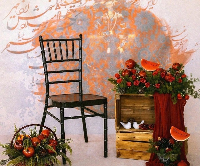 ۶- دکور شب یلدا برای عکاسی با استفاده از کرسی