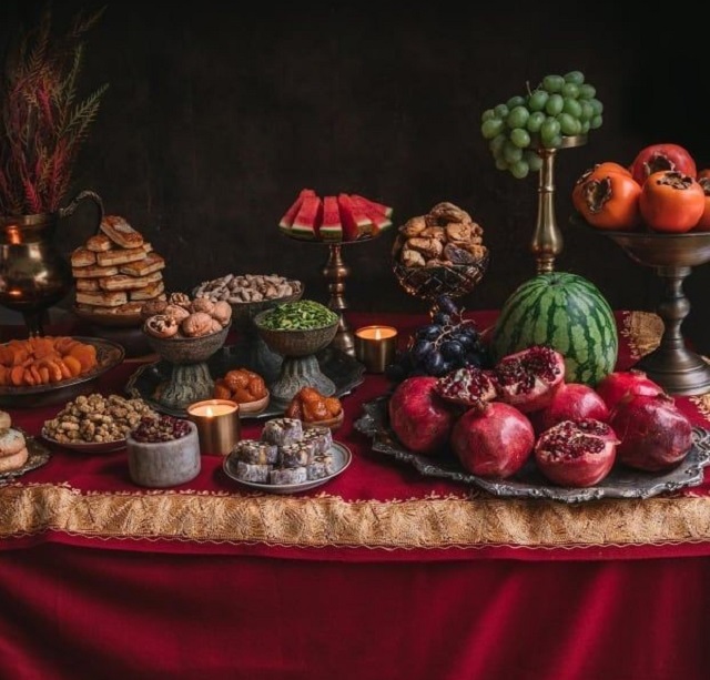 ۵- طراحی یک فضای یلدایی در فضای بیرون منزل برای عکاسی یلدا