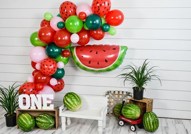 برای این کار میتوانید از بادکنکهایی به شکل هندوانه و با رنگهای سبز و قرمز و سفید استفاده کنید. یک میز، چند گل و شمعدان و چند هندوانه و انار برای تزئین استفاده کنید. تمام خلاقیت خود را به کار ببرید تا زیباترین فضا را برای عکاسی شب یلدا ایجاد کنید.