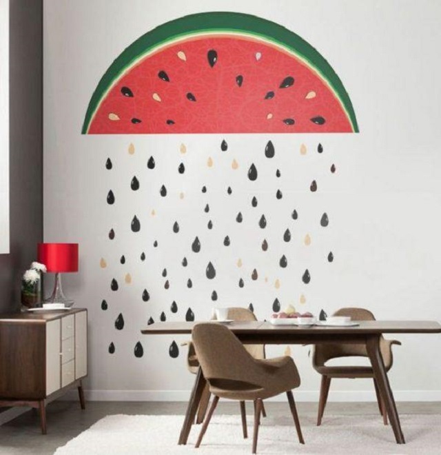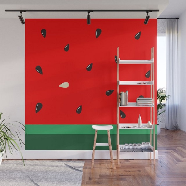 ۷- استفاده از طرح هندوانه روی دیوار برای دکور یلدا در منزل