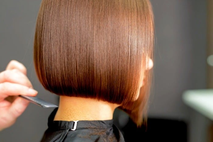 مدل موی کوتاهی را انتخاب کنید که از قسمت گوش کمی پایین تر باشد و یا اینکه کمی پایین تر از چانه مو کوتاه شود تا حالت کشیدگی صورت شما را کم کند.
