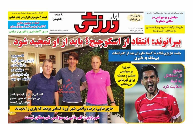 صفحه نخست روزنامههای امروز سه شنبه 16 آذر 1400 1400/09/16 06:57 294 0 0 صفحه نخست روزنامههای امروز سه شنبه 16 آذر 1400 بیشتر بخوانید صفحه نخست روزنامههای امروز سه شنبه 27 مهر 1400صفحه نخست روزنامههای امروز شنبه 10 مهر 1400صفحه نخست روزنامههای امروز سه شنبه 15 تیر 1400 روزنامه روزنامه های سراسری مطبوعات کشور پیشخوان پیشخوان مطبوعات عناوین روزنامه 0 1 2 3 4 5 امتیاز: 0 (از 0 رأی ) مطالب مشابه صفحه نخست روزنامههای امروز شنبه 10 مهر 1400 ادامه مطلب صفحه نخست روزنامههای امروز سه شنبه 15 تیر 1400 ادامه مطلب صفحه نخست روزنامههای امروز سه شنبه 27 مهر 1400 ادامه مطلب برچسب ها روزنامه روزنامه های سراسری مطبوعات کشور پیشخوان پیشخوان مطبوعات عناوین روزنامه نظرشما اینجا بنویسید کد را وارد کنید: * کد را وارد کنید ارسال نظرهای دیگران نظری وجود ندارد. شما اولین نفری باشید که نظر می دهد اشتراک گذاری پیشنهاد ویرایش ارسال به تلگرام ارسال به فیسبوک ارسال به توئیتر
