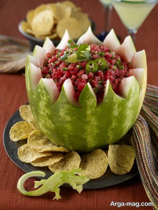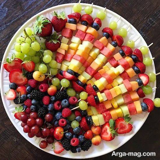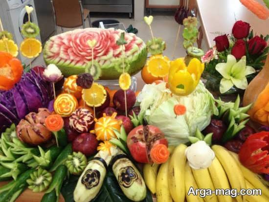 در صورتی که تمایل دارید میوه و دسر و … را روی سفره قرار دهید بهتر است سفره با طرح و رنگی زیبا را پهن کنید سپس تنقلات و میوه های تزیین شده را روی سفره بچینید و از مهمان هایتان پذیرایی کنید.