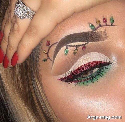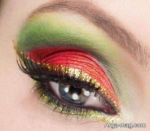 برای میکاپ چشم ها نیز می توانید از سایه ها با ترکیب رنگ های قهوه ای و سبز و کرم و قرمز مایل به صورتی و مشکی و رنگ هایی که نماد شب یلدا هستند استفاده نمایید سپس به کمک خط چشمی بلند و مشکی به چشم هایتان فرم و حالت بی نظیری ببخشید و مژه هایتان را فر دهید و به کمک ریمل به مژه های خود حالت دهید.