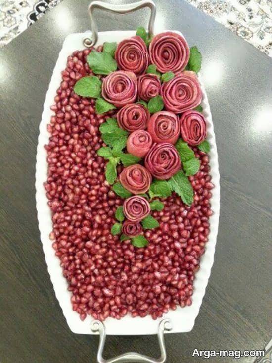 مدل های مختلف زیبایی برای تزیین انار وجود دارد، که هر کس بسته به هنر و سلیقه اش، طرح خاصی را می پسندد. مثلا می توان با انار دانه شده گل رز ساخت. روش ساخت آن بسیار ساده است و در ساخت آن باید کمی دقت کرد.