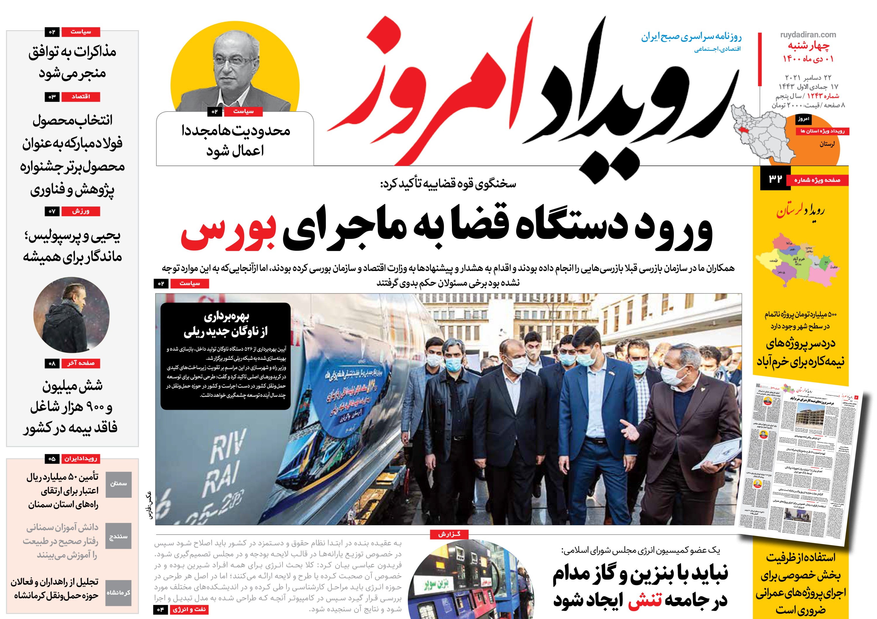 کد: 103373 | 01 دی 1400 ساعت 03:39 روزنامه رویداد امروز چهارشنبه ۱ دی۱۴۰۰ روزنامه رویداد امروز رویداد ایران اشتراک گذاری گزارش خطا × اشتراک گذاری مطلب: روزنامه رویداد امروز چهارشنبه ۱ دی۱۴۰۰ فیسبوک اینستاگرام تلگرام ایکس (توییتر) ایتا بله روبیکا × گزارش خطا برای گزارش خطا با پست الکترونیکی: ruydadiran[at]gmail.com در ارتباط باشید