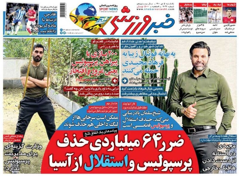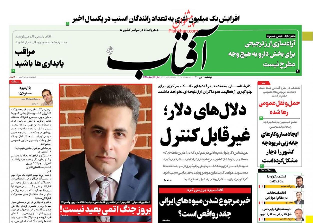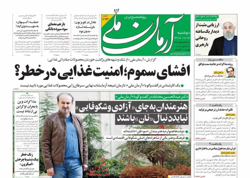 صفحه نخست روزنامههای امروز دوشنبه 6 دی 1400 1400/10/06 07:01 378 0 0 صفحه نخست روزنامههای امروز دوشنبه 6 دی 1400 بیشتر بخوانید صفحه نخست روزنامههای امروز دوشنبه 1 آذر 1400صفحه نخست روزنامههای امروز دوشنبه 8شهریور 1400صفحه نخست روزنامههای امروز دوشنبه 4 مرداد 1400 روزنامه روزنامه های سراسری مطبوعات کشور پیشخوان پیشخوان مطبوعات عناوین روزنامه 0 1 2 3 4 5 امتیاز: 0 (از 0 رأی ) مطالب مشابه صفحه نخست روزنامههای امروز دوشنبه 4 مرداد 1400 ادامه مطلب صفحه نخست روزنامههای امروز دوشنبه 1 آذر 1400 ادامه مطلب صفحه نخست روزنامههای امروز دوشنبه 8شهریور 1400 ادامه مطلب برچسب ها روزنامه روزنامه های سراسری مطبوعات کشور پیشخوان پیشخوان مطبوعات عناوین روزنامه نظرشما اینجا بنویسید کد را وارد کنید: * کد را وارد کنید ارسال نظرهای دیگران نظری وجود ندارد. شما اولین نفری باشید که نظر می دهد اشتراک گذاری پیشنهاد ویرایش ارسال به تلگرام ارسال به فیسبوک ارسال به توئیتر