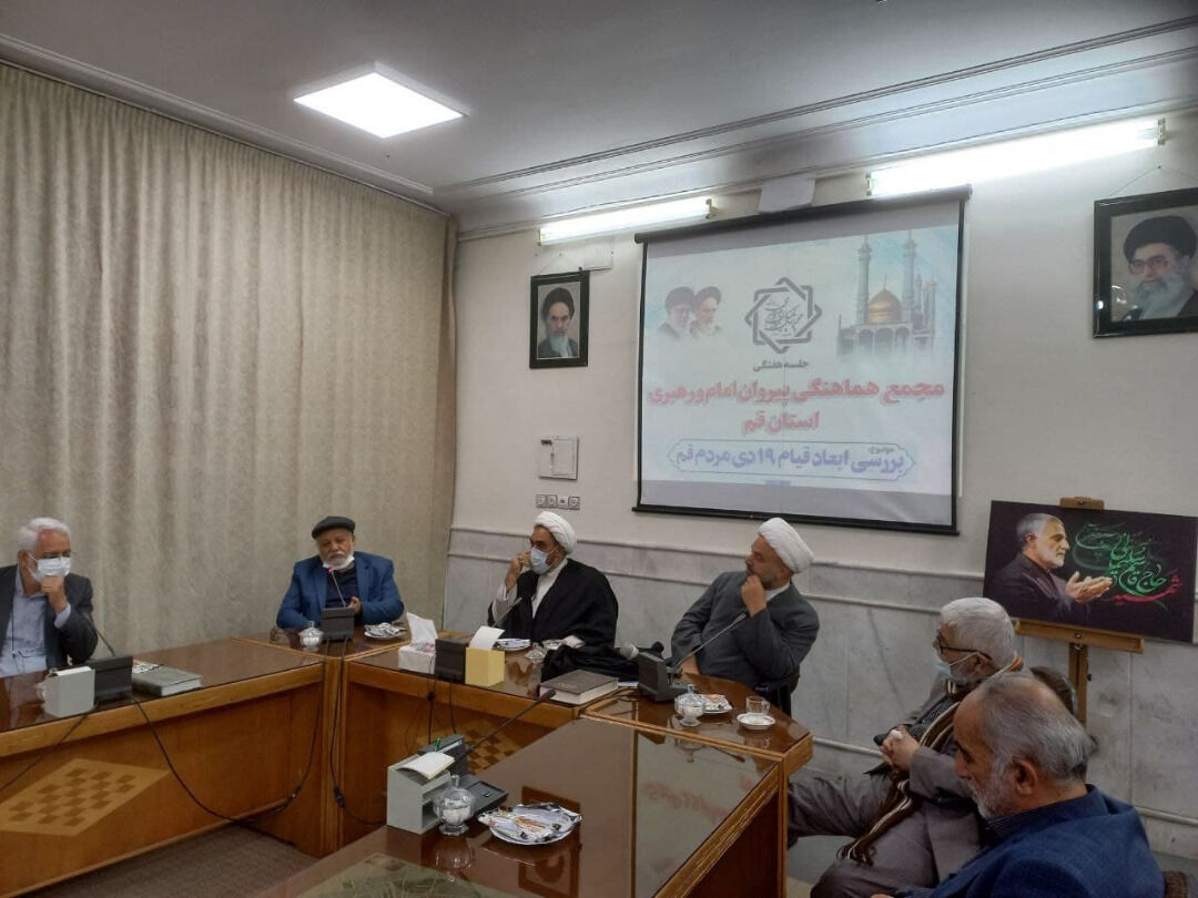 نشست «بررسی ابعاد قیام ۱۹ دی مردم قم» با حضور جمعی از تعدادی از تحلیل‌گران سیاسی و مبارزان دوران قبل از انقلاب اسلامی در مجمع هماهنگی پیروان امام و رهبری در قم برگزار شد.