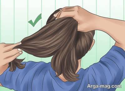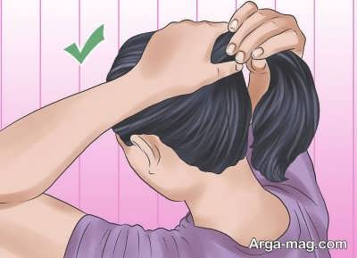 • ابتدا موها را به شکل دم اسبی به کمک یک دست نگه دارید.