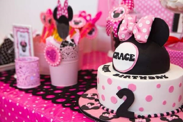 مهم‌ترین عناصری که می‌توانید در این ایده برای تم تولد یک سالگی استفاده کنید، استفاده از رومیزی و لوازمی با رنگ صورتی یا قرمز با خال‌های سفید است. شما می‌توانید با آویزان کردن طرح مینی موس به دیوار و سفارش کیک تولد مینی موس زیبا این تم تولد را کامل کنید.