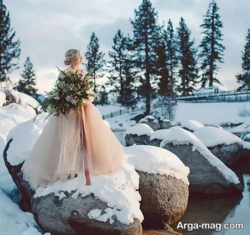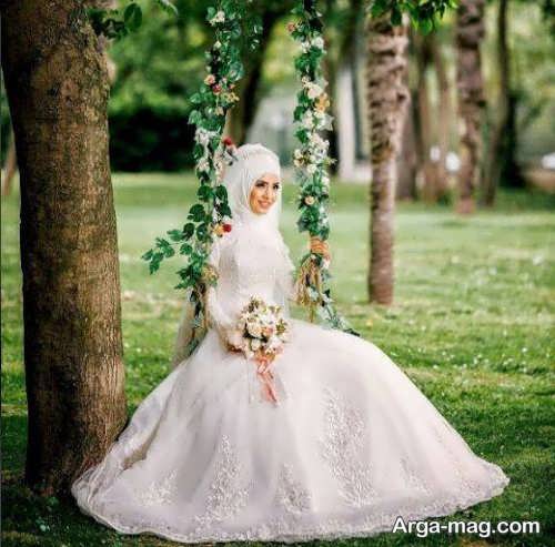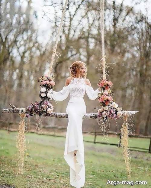 ژست زیبا و جالب عروس در فضای باز