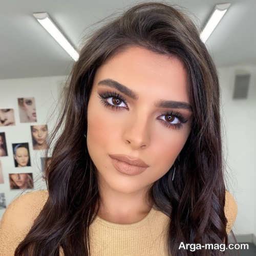 ۲. بهتر است برای طبیعی تر به نظر رسیدن میکاپ صورت از کشیدن خط چشم خودداری نمایید و در صورتی که تمایل دارید تغییراتی را در فرم چشم هایتان ایجاد نمایید می توانید خط چشم ساده و بدون دنباله ای را بکشید. اگر تمایل به کشیدن سایه چشم دارید می توانید سایه ای با رنگ ملایم نظیر رنگ آجری ، طوسی و … را روی پلک چشم هایتان بزنید سپس مژه هایتان را به کمک فرمژه فر دهید و ریمل بزنید.