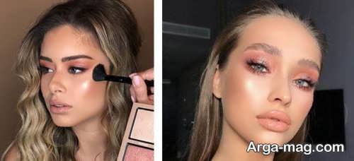 ۴. برای میکاپ گونه ها از رژگونه ای که با تناژ رنگ پوست شما مطابقت دارد استفاده نمایید همچنین رژگونه را باید در قسمت زیر گونه ها بزنید سپس آن را تا جای ممکن است محو نمایید.