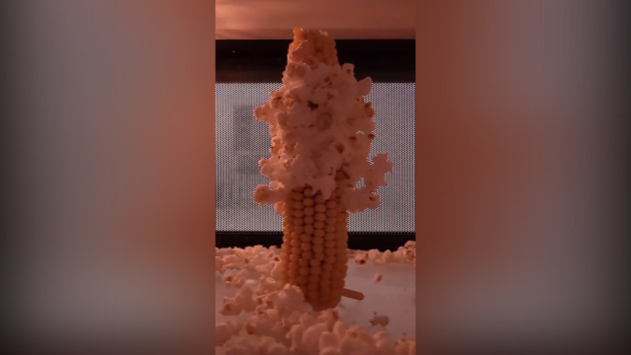 شخصی یک ذرت را در ماکروویو قرار داد و از مراحل آماده شدن پاپ کورن تصویربرداری کرد.