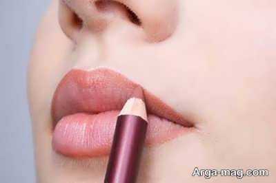 ۷. برای گریم لب ها دور لب هایتان را خط لب بکشید سپس از رژلب تیره برای آرایش لب های خود استفاده کنید.