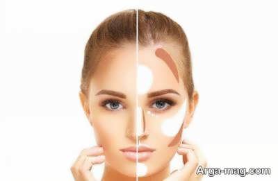 به کار بردن رنگ های تیره، پوست را تو رفته تر نشان داده و رنگ های روشن ویژگی های چهره را برجسته نشان می دهند. حال برای لاغر نشان دادن صورت خود، می توانید از کیت کانتورینگ و یا برنزر استفاده نمایید.