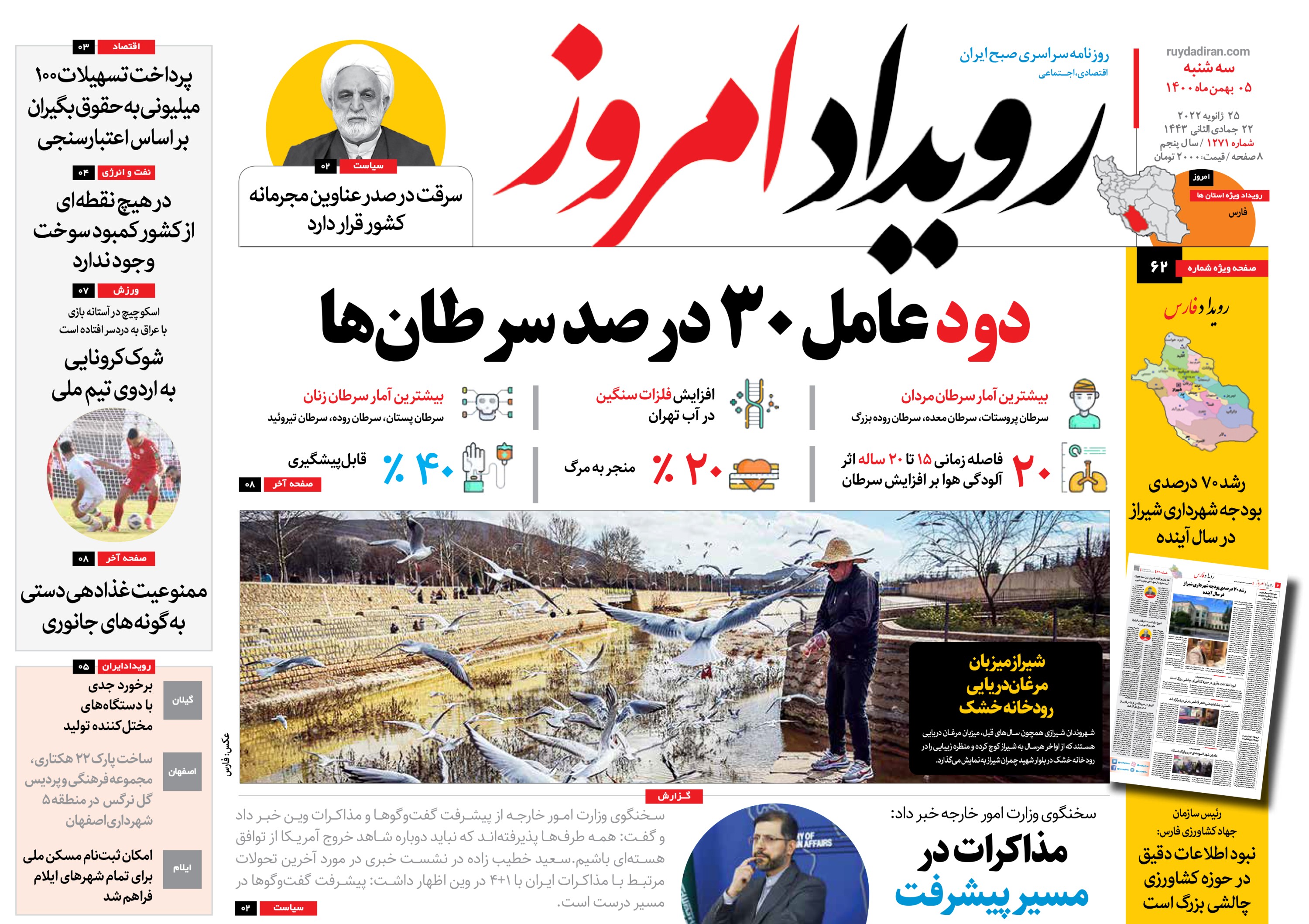 کد: 112976 | 05 بهمن 1400 ساعت 03:34 روزنامه رویداد امروز سه شنبه ۵ بهمن ۱۴۰۰ روزنامه رویداد امروز رویداد ایران اشتراک گذاری گزارش خطا × اشتراک گذاری مطلب: روزنامه رویداد امروز سه شنبه ۵ بهمن ۱۴۰۰ فیسبوک اینستاگرام تلگرام ایکس (توییتر) ایتا بله روبیکا × گزارش خطا برای گزارش خطا با پست الکترونیکی: ruydadiran[at]gmail.com در ارتباط باشید