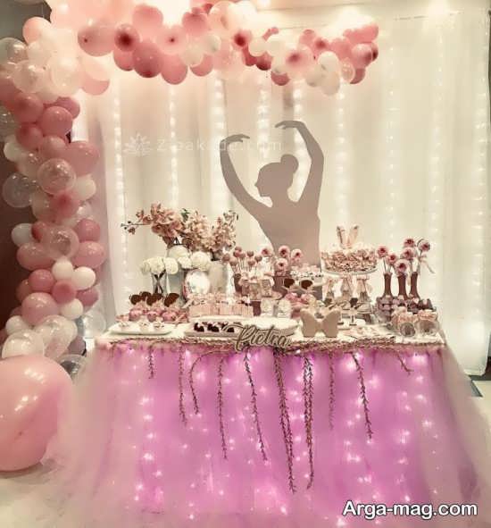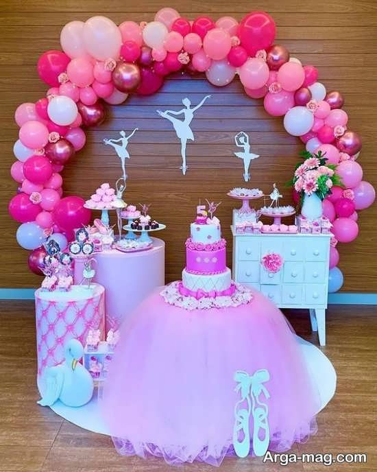 تم تولد بالرین تمی مناسب برای دختران در رده سنی ۱ تا ۱۳ سال می باشد و این تم ترکیبی از رنگ های صورتی و سفید است و اگر شما تمایل دارید برای تزیینات جشن تولدهای خانم های جوان از این تم استفاده نمایید بهتر است مقدار کمی رنگ طلایی نیز به تزیینات این تم اضافه کنید.