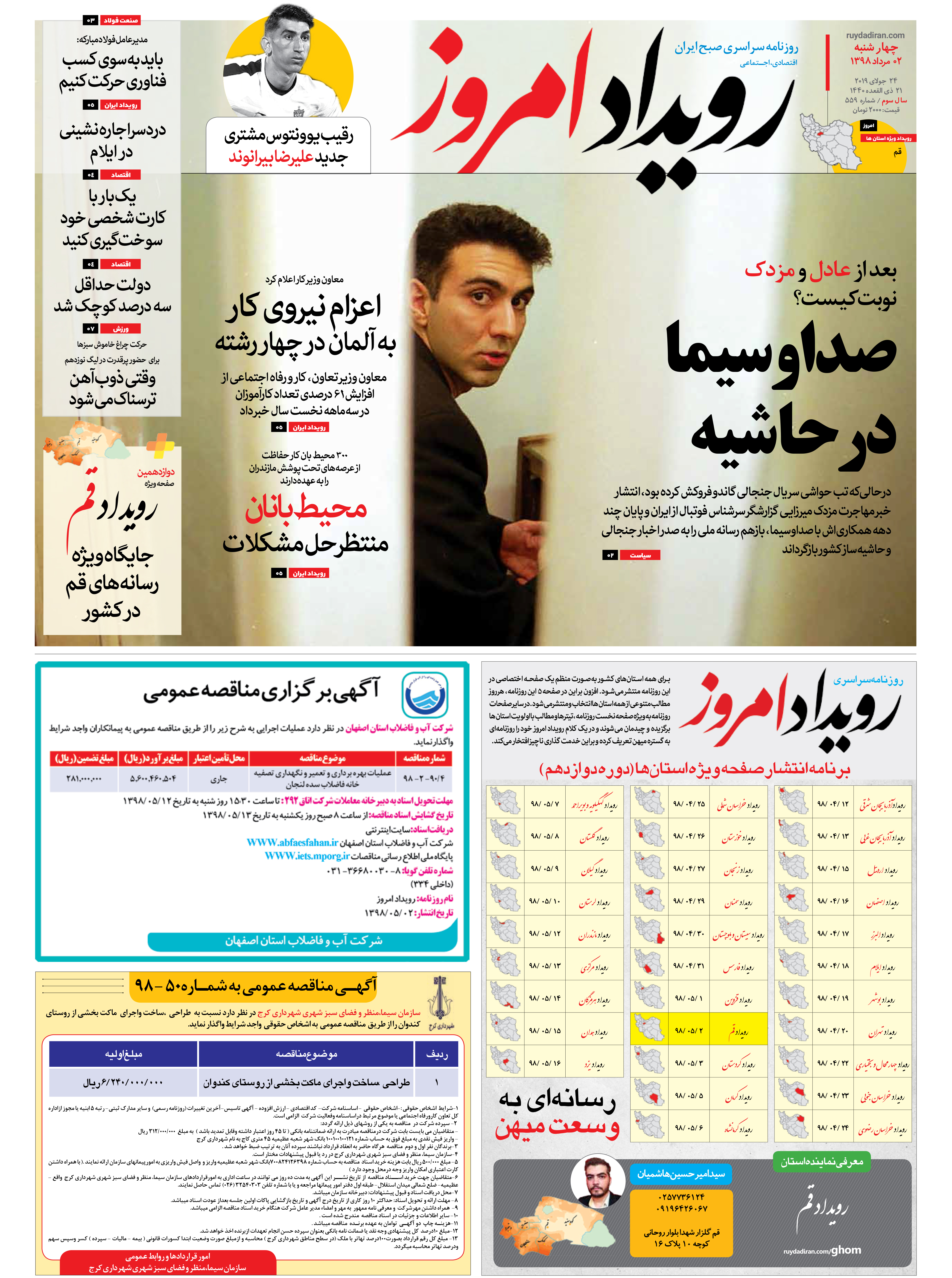 روزنامه رویداد امروز یکشنبه ۲مرداد 1398