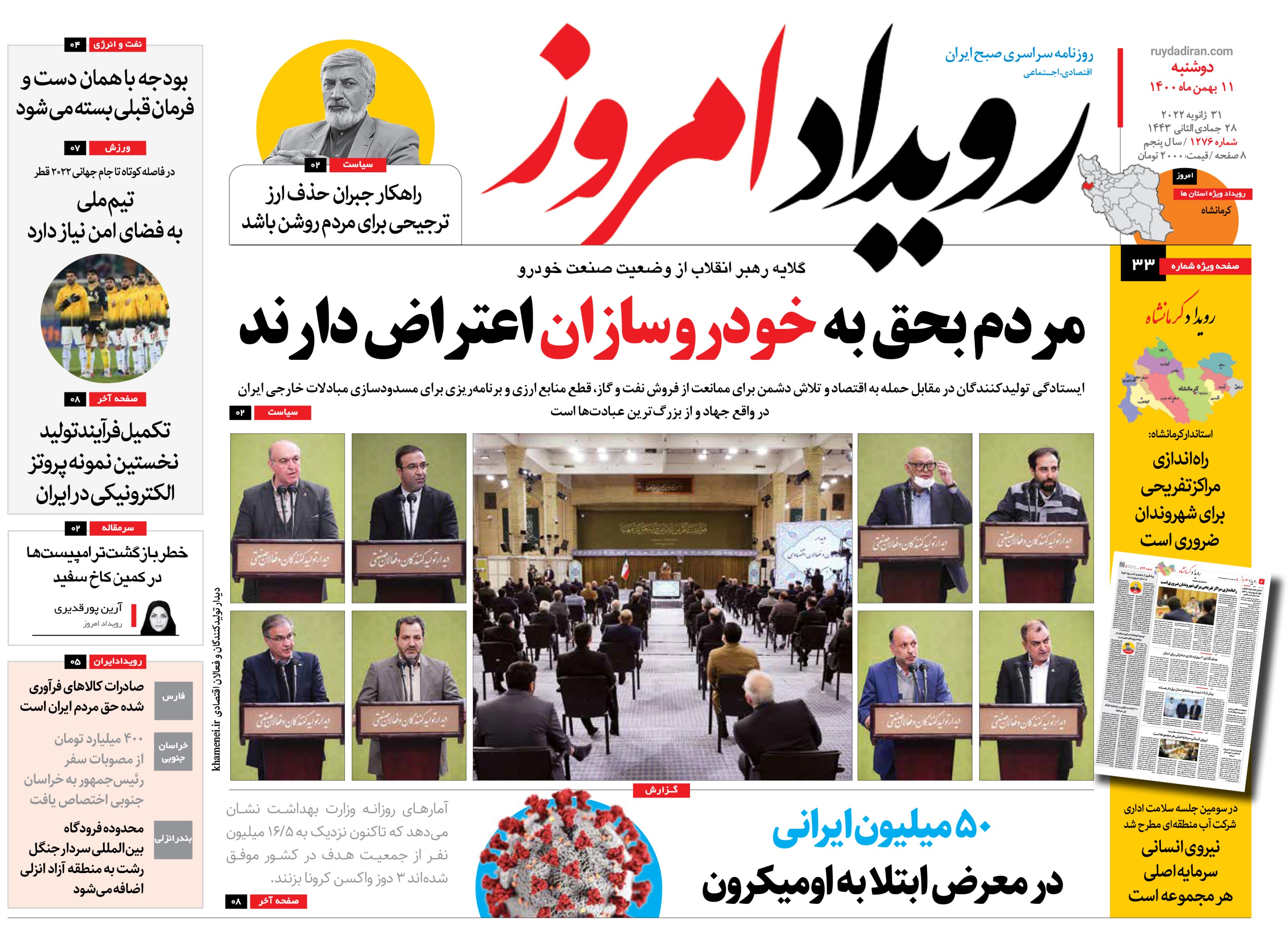 روزنامه رویداد امروز دوشنبه ۱۱ بهمن ۱۴۰۰