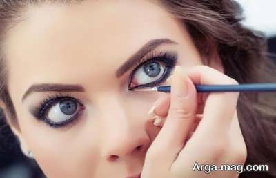 ۵. برای آرایش چشم ها از سایه ، ریمل و خط چشم ضد آب استفاده نمایید و مدل سایه ای مناسب را روی پلک چشم ها بکشید سپس به کمک خط چشم به چشم هایتان فرم و حالت دهید و در صورت تمایل می توانید مژه هایتان را فر دهید همچنین برای حرفه ای تر به نظر رسیدن آرایش چشم هایتان نیز می توانید از مژه مصنوعی استفاده کنید.