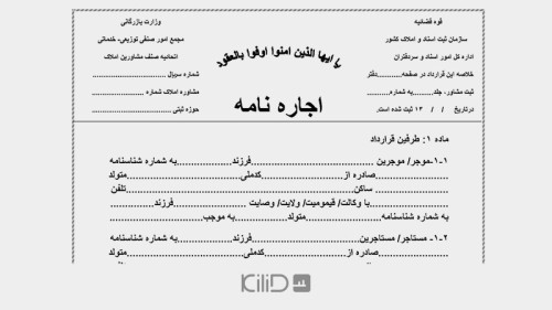 در شکل زیر نمونه قرارداد رهن و اجاره الکترونیکی آورده شده است که میتوانید برای عقد قرارداد اجاره خانه از آن کمک بگیرید.