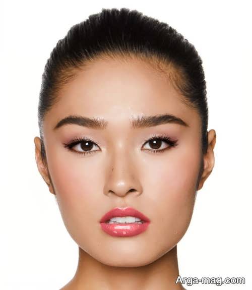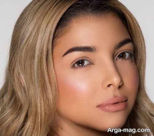 ۵. در این مرحله می توانید رژگونه بزنید که برای زدن رژگونه بهتر است از رنگ های شاد و روشن نظیر هلویی و گلبهی و قهوه ای روشن و … استفاده نمایید.