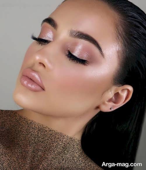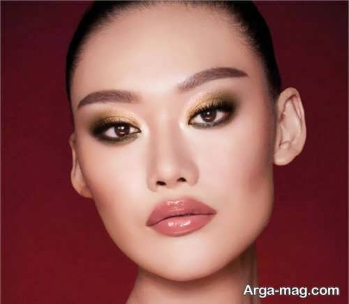 ۲. برای آرایش چشم ها می توانید از سایه چشم با رنگ های قهوه ای متوسط ، هلویی ،رزگلد و … استفاده نمایید همچنین می توانید سایه چشم را به صورت ترکیبی پشت پلک چشم هایتان بزنید.