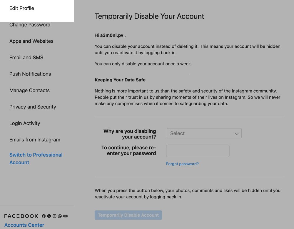 نکات مهم غیرفعال سازی موقت اکانت اینستاگرام
