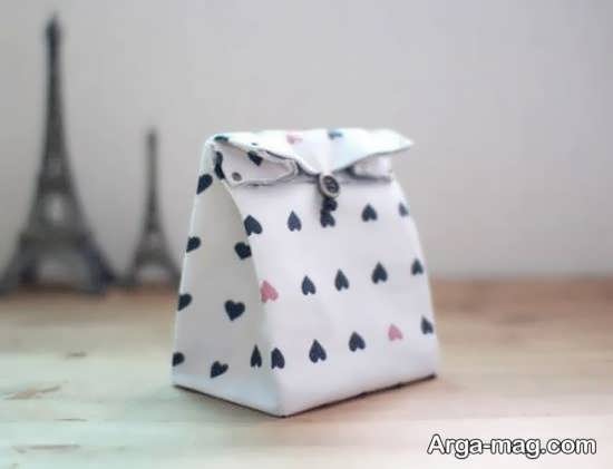 در نهایت نیز پاکت ۱ عدد دکمه دوخته، کادوی آماده شده ی خود را بر روی آن قرار دهید و کش دوخته شده را به دور آن بیندازید. این دکمه و کش در واقع باز و بسته کننده ی درب پاکت می باشند.