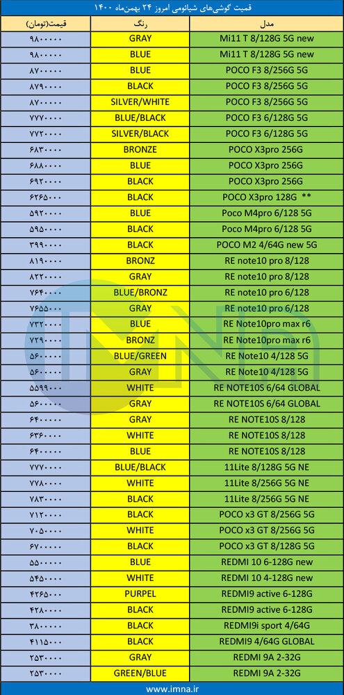 رویداد ایران > رویداد > اقتصادی > قیمت گوشی‌ شیائومی + لیست جدیدترین انواع موبایل امروز (۲۴ بهمن)