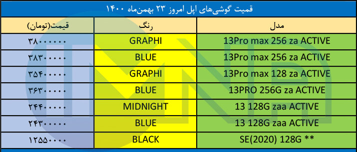 به گزارش خبرنگار ایمنا، در ادامه لیست پرفروشترین مدلهای گوشی تلفن همراه برند اپل در بازه زمانی هفت روز گذشته در بازارهای ایران به همراه قیمت حدودی آن را مشاهده میکنید: