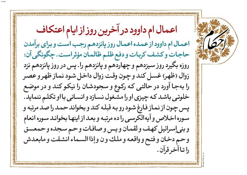 اعمال شب و روز ۱۳ رجب + اعمال ایامالبیض و دعای ام داوود