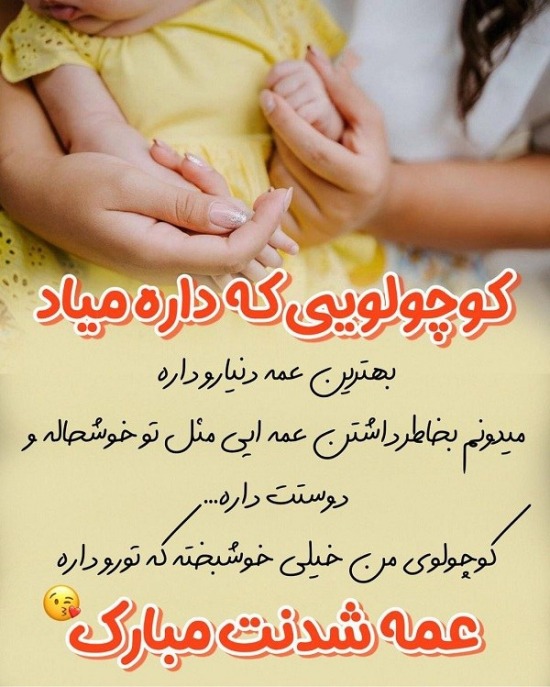 بدون شک، یکی از لحظاتی که در زندگی تبدیل به خاطره ای شیرین و به یادماندنی می شود، زمانی است که عمه و خاله می شویم و یا کسی از آشنایان و حتی دوستان این خبر مهم را به ما می دهند، ناخودآگاه احساس زیبا و دلنشینی در وجود انسان ایجاد می شود. قطعا خیلی ار افراد این حس را تجربه کرده و یا گاهی برای دومین بار و یا سومین بار عمه می شوند و دوست دارند این خبر مهم را به اطرافیان خود اطلاع دهند و دیگران هم به او تبریک بگویند. به همین خاطر در شبکه های مجازی انواع عکس نوشته و عکس پروفایل خبر خاله شدن، عکس نوشته درباره دایی و عکس پروفایل مادر شدن با طرح های متنوع و دوست داشتنی منتشر شده است.