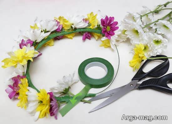 - در درست کردن تاج گل سر دقت داشته باشید که همه ی گل ها هم جهت و همگی به سمت بالا قرار بگیرند.