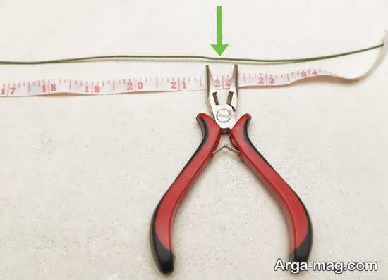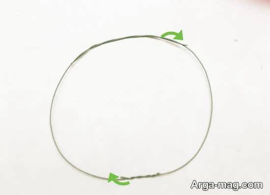 عدد به دست آمده از اندازه گیری سر خود را + ۵ کرده و تکه ای سیم منعطف و نازک را برش بزنید و به شکل حلقه در بیاورید. به این صورت که پایان دو لبه ی سیم را تقریبا به اندازه ی ۳ سانتیمتر بر روی یکدیگر آورده, دایره بسازید(دقت داشته باشید که سیم خیلی هم نباید نازک باشد؛ اما اگر چنین بود دو لایه سیم را دور یکدیگر پیچ دهید تا سفت تر شود).