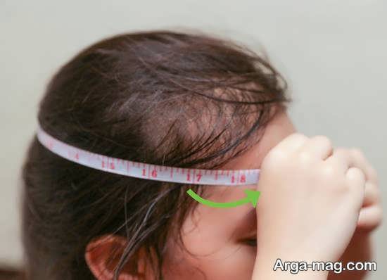 ابتدا در اولین مرحله و برای شروع سر خود را اندازه بگیرید(دقت کنید که مدل شنیون و حجم موی شنیون شده را نیز در نظر بگیرید).