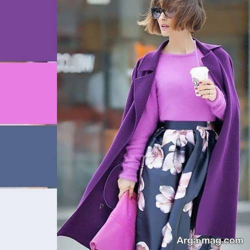 همانطور که گفتیم؛ بنفش یک رنگ ثانویه است که از ترکیب رنگهای اصلی آبی و قرمز ساخته می شود، از این رو همه رنگ هایی که با قرمز و آبی هماهنگ هستند، می توانند با رنگ بنفش نیز همخوانی داشته باشند، البته به هنگام ترکیب کردن لباسها، انتخاب رنگ بنفش مناسب از اهمیت زیادی برخوردار است، زیرا ممکن است رنگ هایی که با بنفش بادمجانی تیره خوب به نظر می رسند، لزوماً با بنفش روشن یا یاسی ظاهر شیک و معقولی نداشته باشند. حال با انتخاب لباسهایی با رنگ بنفش می توانید به راحتی از دیگران متمایز شوید، در ادامه تصاویر جدیدتری از ترکیب لباسهای دارای رنگ بنفش با رنگ لباسهای دیگر قرار داده ایم که می توانید ببینید و برای ست مناسب لباسهایتان الهام بگیرید.