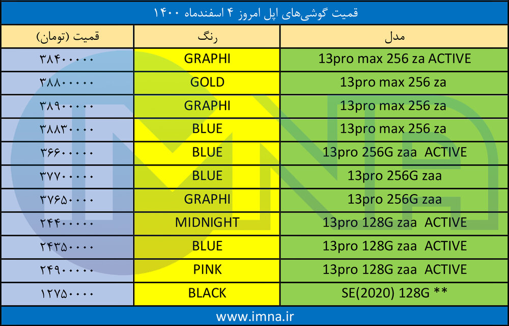 رویداد ایران > رویداد > اقتصادی > قیمت گوشی‌ آیفون امروز ۴ اسفند 1400