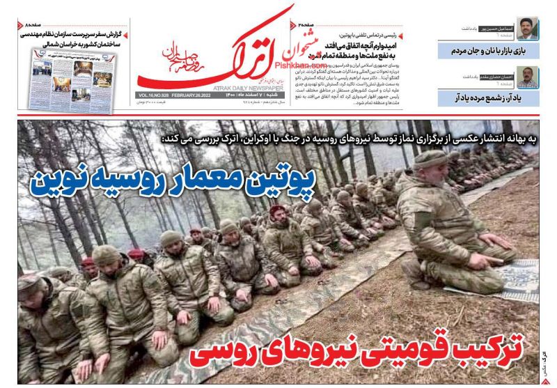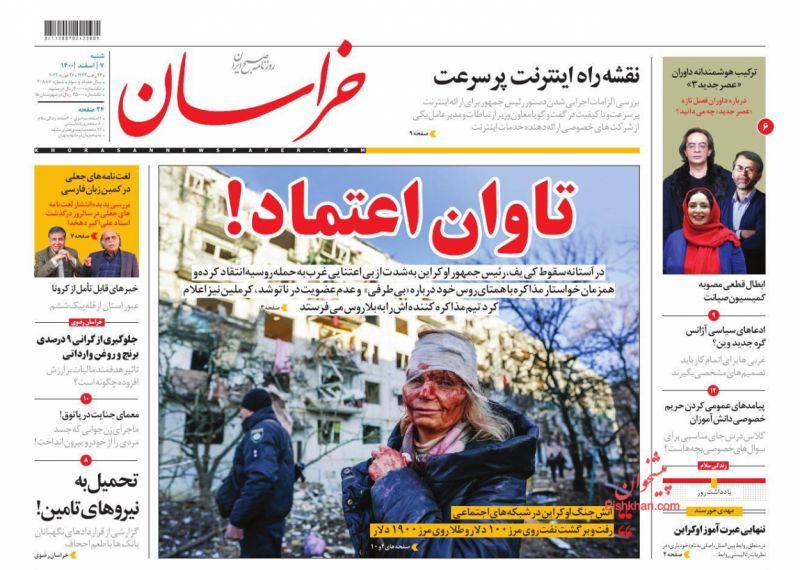 صفحه نخست روزنامههای امروز شنبه 7 اسفند 1400 1400/12/07 06:43 376 0 0 صفحه نخست روزنامههای امروز شنبه 7 اسفند 1400 بیشتر بخوانید صفحه نخست روزنامههای امروز سه شنبه 24 اسفند 1400صفحه نخست روزنامههای امروز سه شنبه 17 اسفند 1400صفحه نخست روزنامههای امروز شنبه 14 اسفند 1400 روزنامه روزنامه های سراسری مطبوعات کشور پیشخوان پیشخوان مطبوعات 0 1 2 3 4 5 امتیاز: 0 (از 0 رأی ) مطالب مشابه صفحه نخست روزنامههای امروز سه شنبه 17 اسفند 1400 ادامه مطلب صفحه نخست روزنامههای امروز سه شنبه 24 اسفند 1400 ادامه مطلب صفحه نخست روزنامههای امروز شنبه 14 اسفند 1400 ادامه مطلب برچسب ها روزنامه روزنامه های سراسری مطبوعات کشور پیشخوان پیشخوان مطبوعات نظرشما اینجا بنویسید کد را وارد کنید: * کد را وارد کنید ارسال نظرهای دیگران نظری وجود ندارد. شما اولین نفری باشید که نظر می دهد اشتراک گذاری پیشنهاد ویرایش ارسال به تلگرام ارسال به فیسبوک ارسال به توئیتر