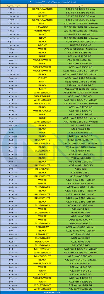 قیمت گوشی‌ سامسونگ امروز 7 اسفند 1400
