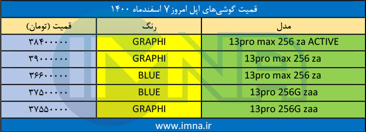 به گزارش خبرنگار ایمنا، در ادامه لیست پرفروشترین مدلهای گوشی تلفن همراه برند اپل در بازه زمانی هفت روز گذشته در بازارهای ایران به همراه قیمت حدودی آن را مشاهده میکنید: