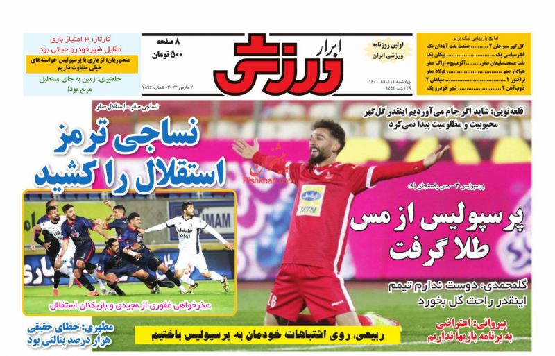 صفحه نخست روزنامههای امروز چهارشنبه 11 اسفند 1400 1400/12/11 06:38 306 0 0 صفحه نخست روزنامههای امروز چهارشنبه 11 اسفند 1400 بیشتر بخوانید صفحه نخست روزنامههای امروز چهارشنبه 25 اسفند 1400صفحه نخست روزنامههای امروز چهارشنبه 18 اسفند 1400صفحه نخست روزنامههای امروز چهارشنبه 4 اسفند 1400 روزنامه روزنامه های سراسری مطبوعات کشور 0 1 2 3 4 5 امتیاز: 0 (از 0 رأی ) مطالب مشابه صفحه نخست روزنامههای امروز چهارشنبه 25 اسفند 1400 ادامه مطلب صفحه نخست روزنامههای امروز چهارشنبه 18 اسفند 1400 ادامه مطلب صفحه نخست روزنامههای امروز چهارشنبه 4 اسفند 1400 ادامه مطلب برچسب ها روزنامه روزنامه های سراسری مطبوعات کشور نظرشما اینجا بنویسید کد را وارد کنید: * کد را وارد کنید ارسال نظرهای دیگران نظری وجود ندارد. شما اولین نفری باشید که نظر می دهد اشتراک گذاری پیشنهاد ویرایش ارسال به تلگرام ارسال به فیسبوک ارسال به توئیتر