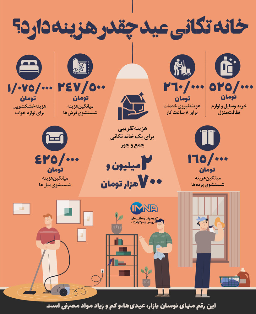 نوروز ۱۴۰۱ در راه است و روزهایمان بیش از هر زمان دیگری رنگ خانه تکانی و زدودن گردو غبار از خانه را بهخود گرفته است. خانهتکانیها، اما دیگر مانند گذشته نیست. حالا هر کار کوچکی در خانه را میتوان به متخصص خود سپرد؛ از گردگیری و شستوشو، تا تمیز کردن دیوارها و لکهگیری مبل و شستن فرش که هزینه بر است.