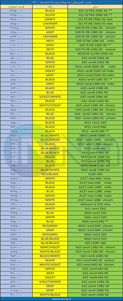 قیمت گوشی سامسونگ امروز ۱۵ اسفند 1400