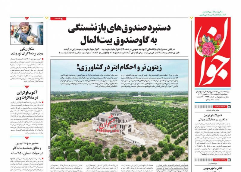 صفحه نخست روزنامههای امروز سه شنبه 17 اسفند 1400 1400/12/17 06:38 313 0 0 صفحه نخست روزنامههای امروز سه شنبه 17 اسفند 1400 بیشتر بخوانید صفحه نخست روزنامههای امروز سه شنبه 24 اسفند 1400صفحه نخست روزنامههای امروز شنبه 14 اسفند 1400صفحه نخست روزنامههای امروز سه شنبه 3 اسفند 1400 روزنامه های سراسری مطبوعات کشور روزنامه 0 1 2 3 4 5 امتیاز: 0 (از 0 رأی ) مطالب مشابه صفحه نخست روزنامههای امروز سه شنبه 24 اسفند 1400 ادامه مطلب صفحه نخست روزنامههای امروز شنبه 14 اسفند 1400 ادامه مطلب صفحه نخست روزنامههای امروز سه شنبه 3 اسفند 1400 ادامه مطلب برچسب ها روزنامه های سراسری مطبوعات کشور روزنامه نظرشما اینجا بنویسید کد را وارد کنید: * کد را وارد کنید ارسال نظرهای دیگران نظری وجود ندارد. شما اولین نفری باشید که نظر می دهد اشتراک گذاری پیشنهاد ویرایش ارسال به تلگرام ارسال به فیسبوک ارسال به توئیتر