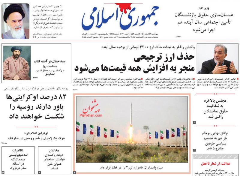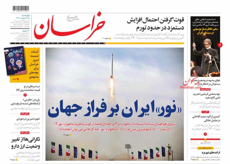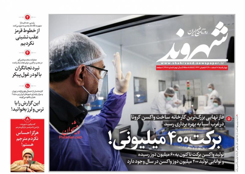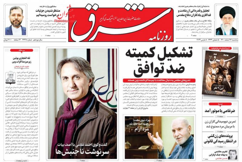 رویداد ایران > رسانه > روزنامه > صفحه نخست روزنامه‌های امروز چهارشنبه 18 اسفند 1400