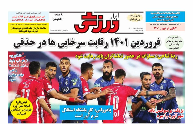 صفحه نخست روزنامه‌های امروز پنجشنبه 19 اسفند 1400